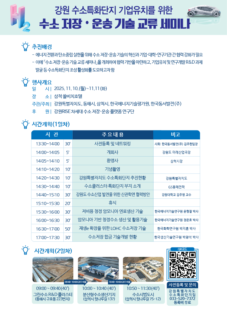[강원특별자치도] 강원 수소특화단지 기업유치를 위한 수소 저장 ·운송 기술 교류 세미나