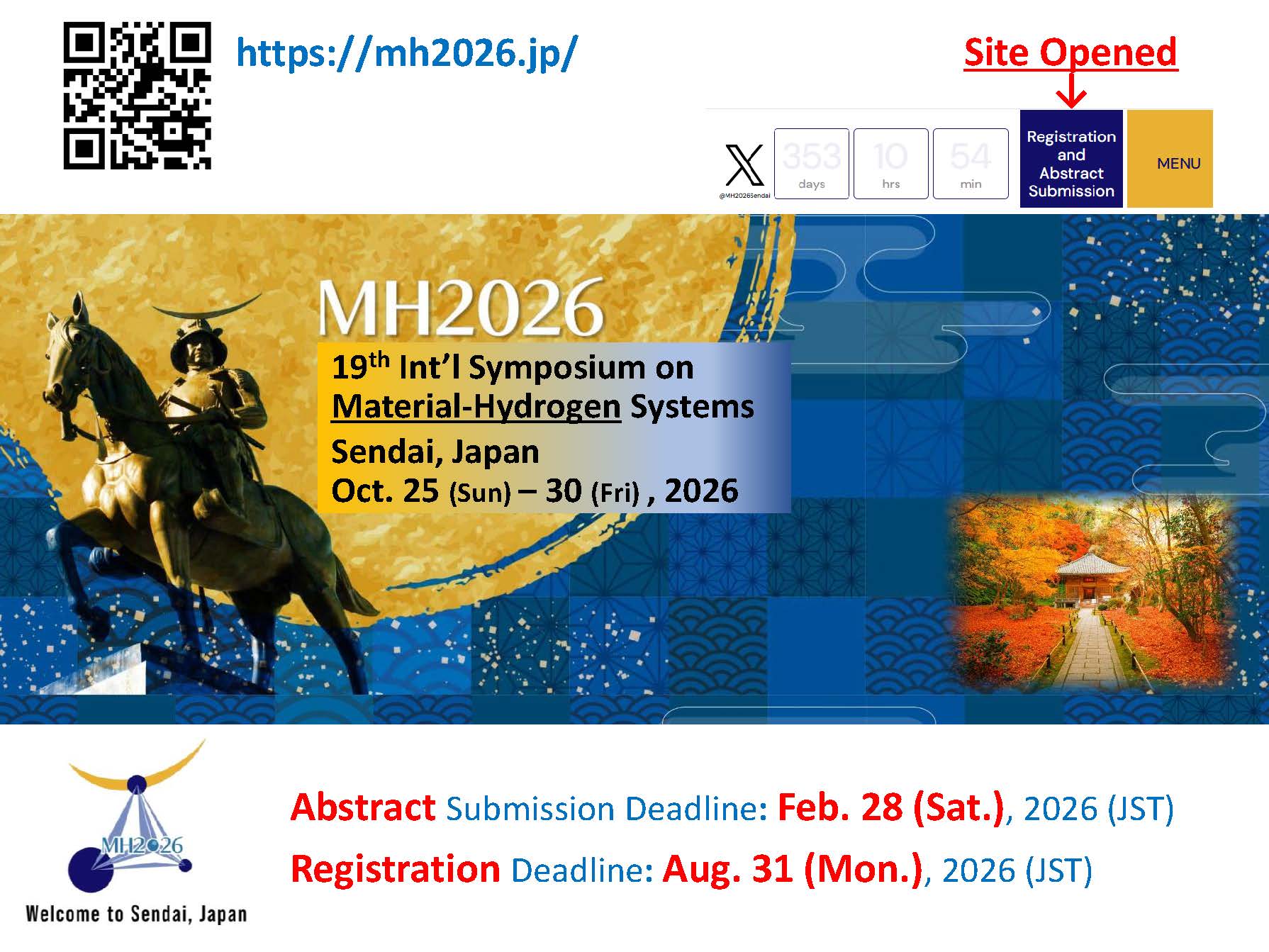[MH2026] 19th International Symposium on Material-Hydrogen Systems