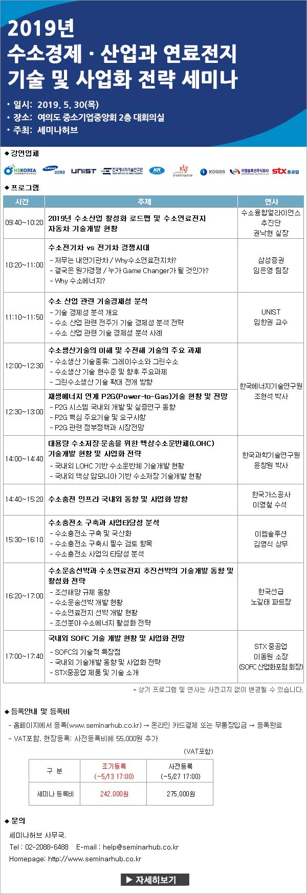 [세미나허브] 수소경제, 산업과 연료전지 기술 및 사업화 전략 세미나