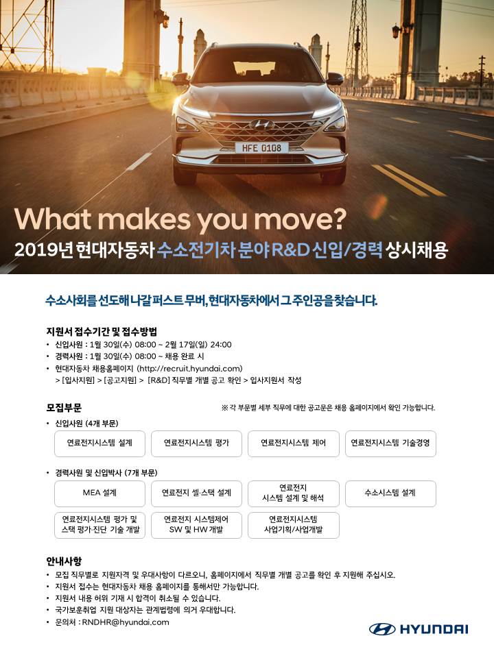 [현대자동차] 2019년 현대자동차 수소연료전지 R&D 신입/경력 상시채용