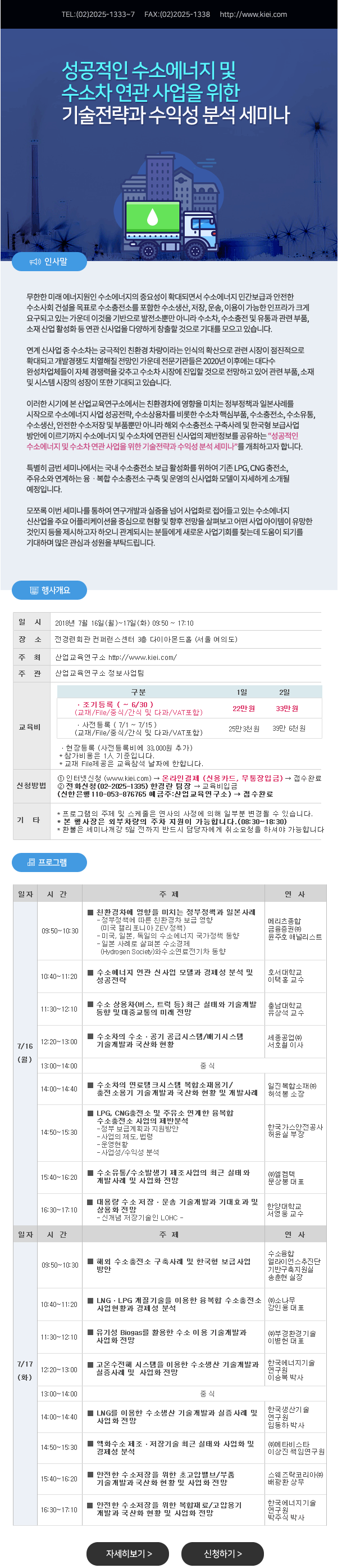 [산업교육연구소] 성공적인 수소에너지 및 수소차 연관 사업을 위한 기술전략과 수익성 분석 세미나