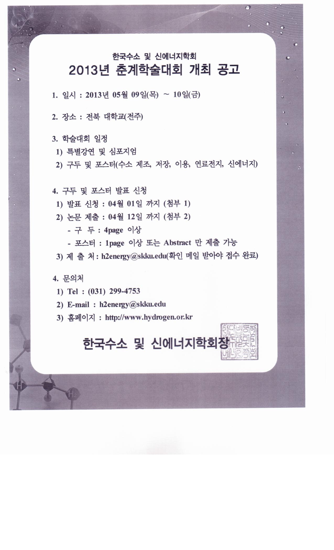 [수소학회] 2013년 춘계학술대회 개최 안내